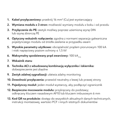 Zapomnij o czasochłonnym wymiarowaniu! Nasze ograniczniki typu 1 i typu 2 z techniką ACI mają wbudowaną kombinację wyłącznika i iskiernika, która zastępuje standardowe dobezpieczenie. Takie rozwiązanie zapewnia bezpieczeństwo, umożliwia swobodną instalację i podnosi poziom dostępności instalacji.