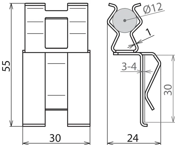 | Zakres zacisku (drut* / płaskownik) | 12 / 30 mm |