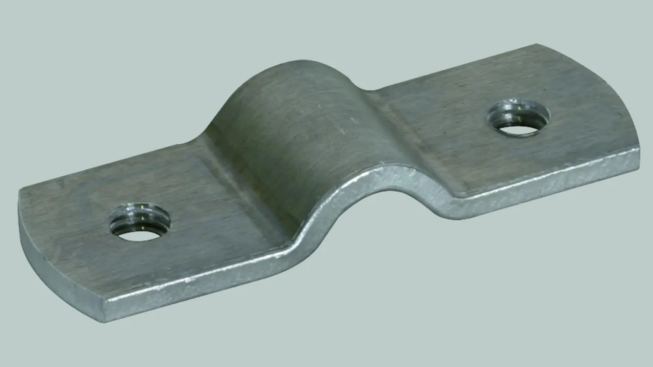 Dwuśrubowa płytka dociskowa, aluminium Dwuśrubowa płytka dociskowa z gwintem M6, do łączenia np. z tabliczką ostrzegawczą „Achtung! Potentialausgleich”, art. nr 480 599 lub np. tabliczkami numeracyjnymi.