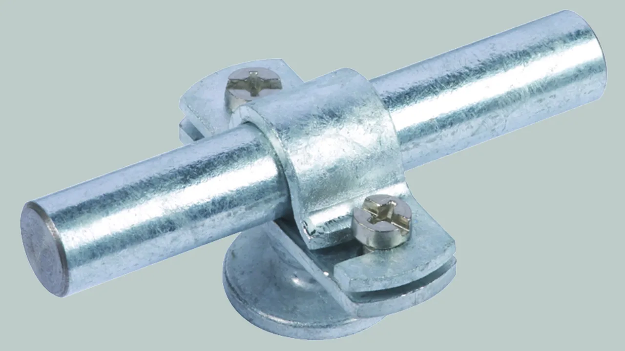 Wsporniki do iglic, z płytką dociskową i kołnierzem, kompletna jednostka z kołnierzem do układania iglic odgromowych
