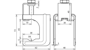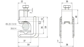 | Zakres zacisku (płaskownik / płaskownik) | (+/II) 30 x 3-4 / 30 x 3-4 mm |