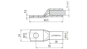 | Końcówka kablowa przyłącza | 7x elastyczny / sztywny przewód 16-95 mm² |