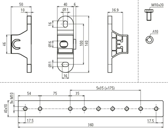 | Przyłączenie (drut / płaskownik) | 1x płaskownik 30/40 mm lub 1x drut okrągły 10 mm |