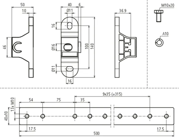| Przyłączenie (płaskownik) | 1x płaskownik 30/40 mm |