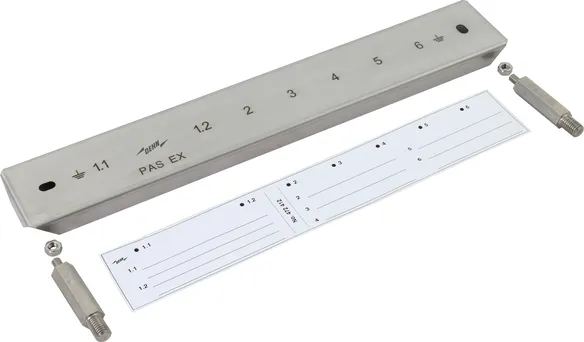 Adapter do nieiskrzącej szyny wyrównawczej do stref zagrożonych wybuchem PAS EX do przyłączania drutu. Do stosowania w strefach zagrożonych wybuchem Ex 1 i 2 (gazy, opary, mgły) do grupy wybuchowości IIC oraz w strefach Ex 21 i 22 (pyły). Dozwolony montaż wewnątrz i na zewnątrz pomieszczeń.