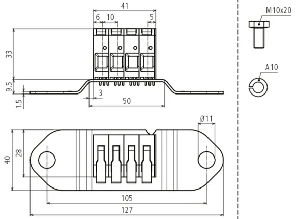 | Maksymalny prąd zwarciowy (AC 50 Hz / DC / 5 s) St/tZn 30x3,5 mm / 40x5 mm | 1500 A / T4 |