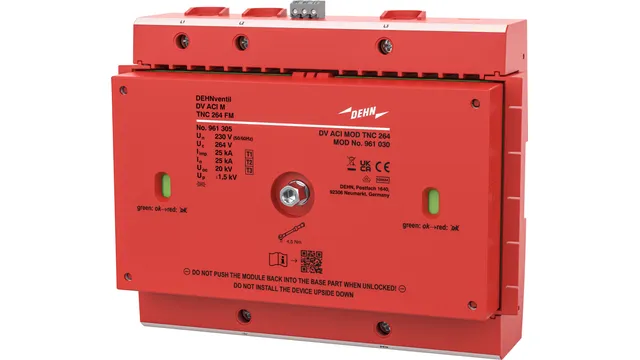 Trójbiegunowy kombinowany ogranicznik przepięć DEHNventil ACI M TNC, typu 1 + typu 2 + typu 3 zgodnie z EN 61643-11 na bazie iskierników z wbudowanym wyłącznikiem ACI i iskiernikiem. Maksymalna dostępność instalacji. Umożliwia ochronę urządzenia końcowego.