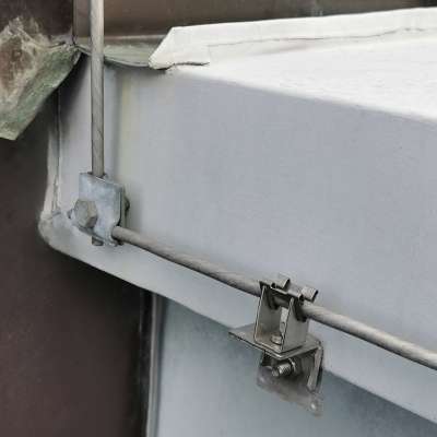 - Uporządkowanie instalacji odgromowej – poprzez zastąpienie elementów zużytych, niskiej jakości (zardzewiałych) na komponenty wysokiej jakości, odpornych na działanie czynników atmosferycznych, wyeliminowanie sytuacji, w których odstęp separujący nie został zachowany, oraz uproszczenie trasowania przewodów na dachu, co ułatwia przemieszczanie się pracowników technicznych na dachu bez ryzyka potknięcia się i wypadku.