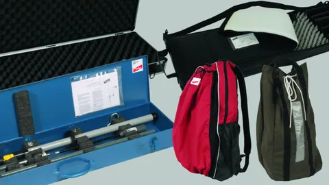 Set of warning signs for electrical installations, earthing and discharge devices, storage bags and transport cases as well as accessories for our safety devices.