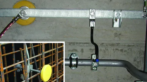 Fixed earthing terminals for installation into concrete allow to connect the protective or functional equipotential bonding to the earth-termination system.