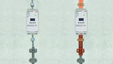 Lightning strike counter for recording discharge currents. Measuring equipment for checking earthing systems. Accessories for straightening round and flat conductors. Insulating and corrosion protection materials for clamping points/connections in the soil.