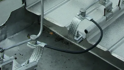 Wsporniki dachowe, łączniki elastyczne i elementy łączące (kable, płaskowniki, końcówki kablowe) do dachów płaskich.