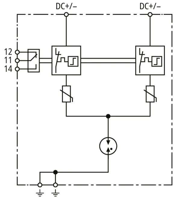 | Napięciowy poziom ochrony [(DC+/DC-) -> PE] (UP ) | < 3 kV |