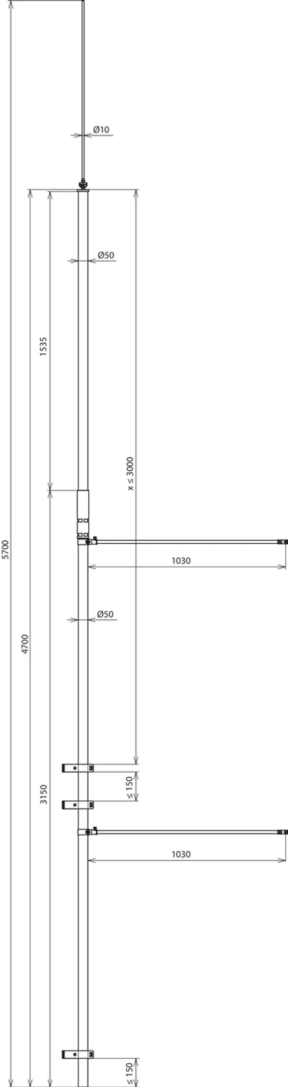 Jednoczęściowy, wysokość całkowita 5700 mm