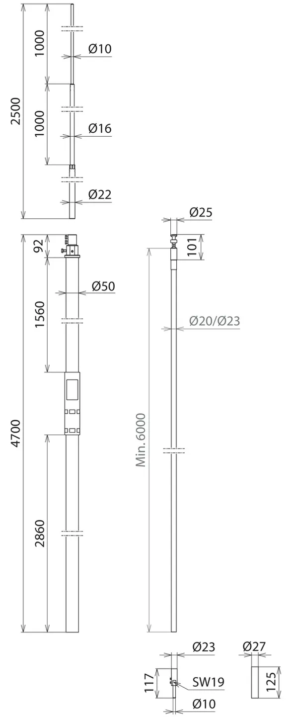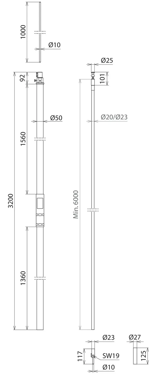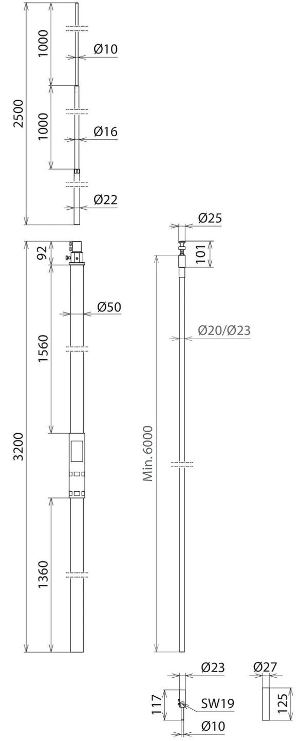 | Maksymalna długość swobodna z iglicą odgromową (montaż naścienny) | 3500 mm |