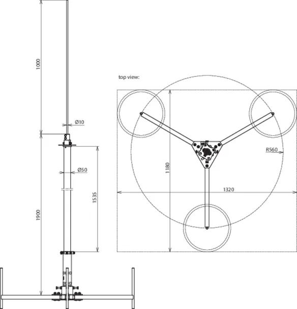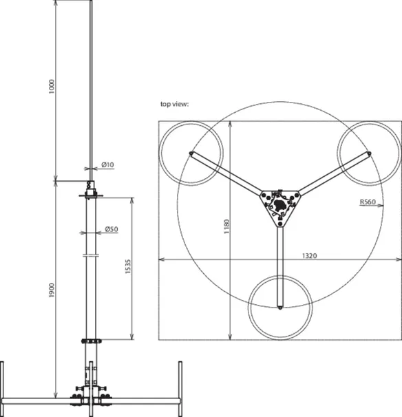 | Maksymalne obciążenie wiatrem przy 3 podstawach po 17 kg, 2 przewody HVI light na zewnątrz | 132 km/h |