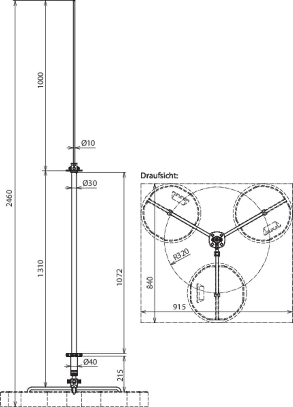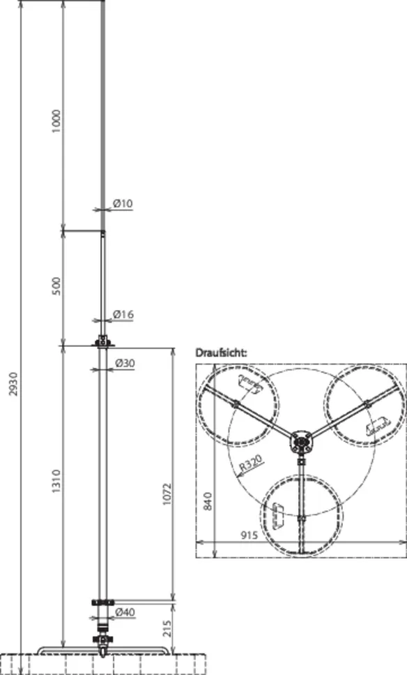 | Maksymalne obciążenie wiatrem przy 9 podstawach po 17 kg, 2 przewody HVI light na zewnątrz | 203 km/h |