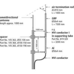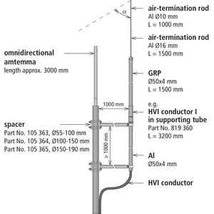 Podczas montażu odseparowanych urządzeń piorunochronnych dla anten dookólnych, należy upewnić się, że odseparowana iglica odgromowa chroni antenę pod wystarczającym kątem ochronnym. Należy również wziąć pod uwagę, że musi być zachowany wystarczający odstęp separujący s.