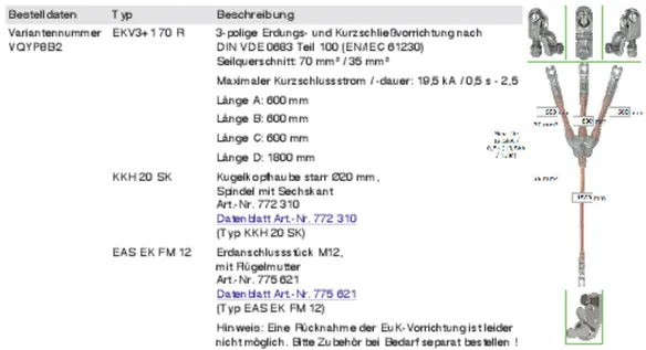 | Przyłącze po stronie uziemienia | EFK FL40 SKN |