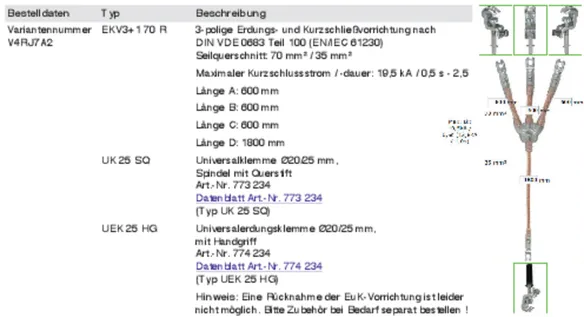 | Przyłącze po stronie uziemienia | UEK 25 HG |