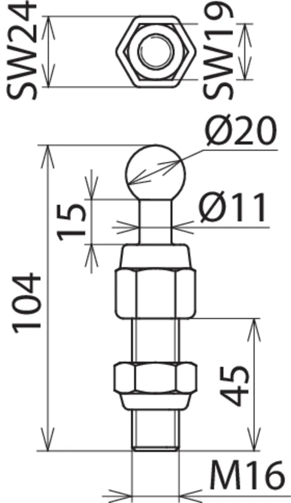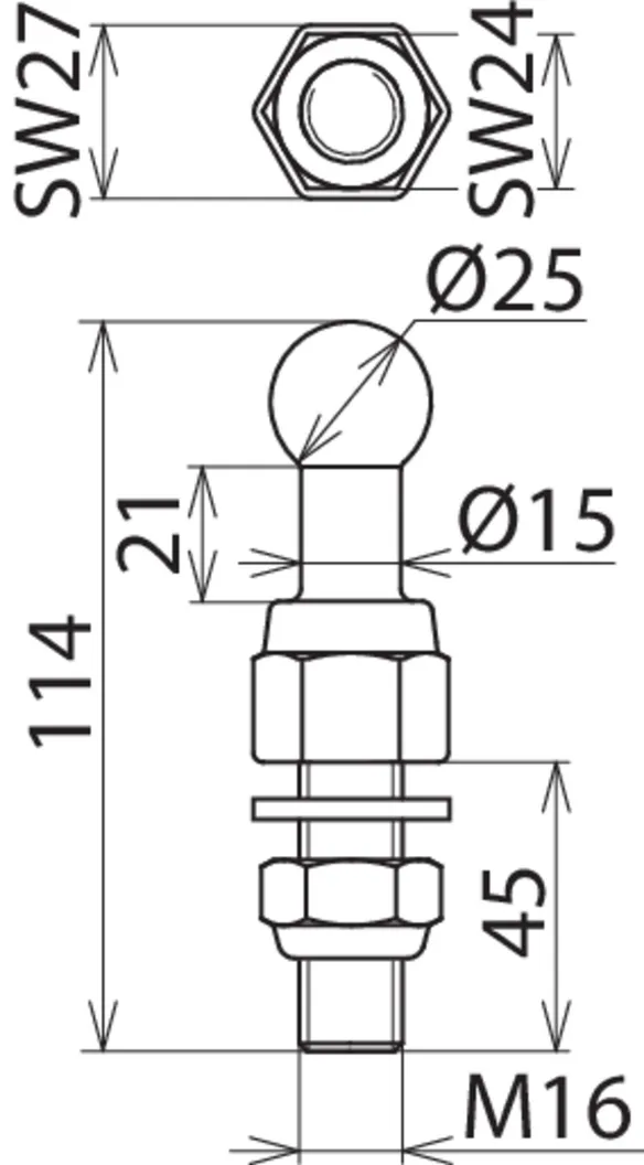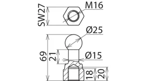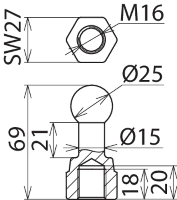 - Wykonany w technice bezwiórowej gwint żeński M12 lub M16