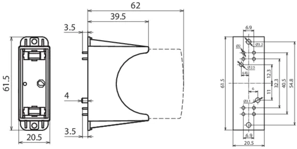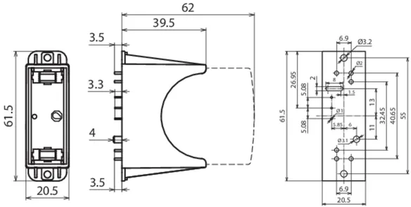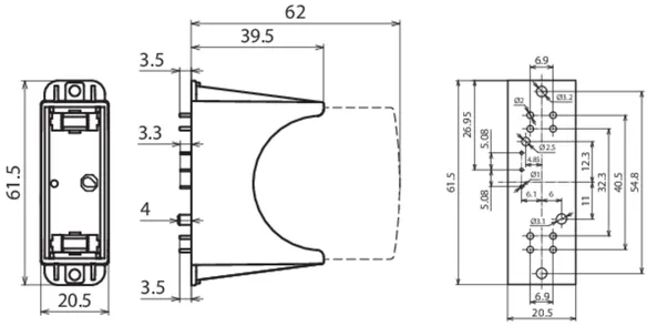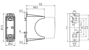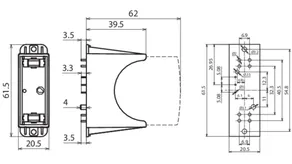 Jednobiegunowa podstawa ze zwiększonym odstępem izolacyjnym powierzchniowym i powietrznym między stykami zasilania i zdalnej sygnalizacji Do montażu na płytkach drukowanych urządzenia do modułów DEHNguard, ze zdalną sygnalizacją stanu (bezpotencjałowy zestyk przełączny).