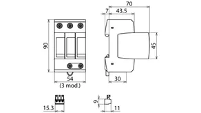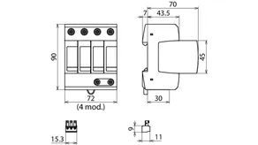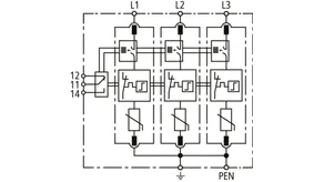 | Napięciowy poziom ochrony [L-PE]/[N-PE] (UP ) | ≤ 1,5 / ≤ 1,5 kV |