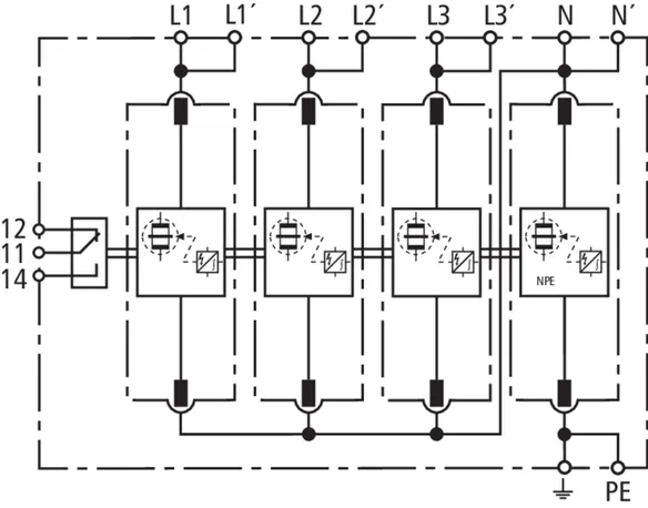 | Piorunowy prąd udarowy(10/350 µs) [L1+L2+L3-PEN] (Itotal ) | 75 kA |