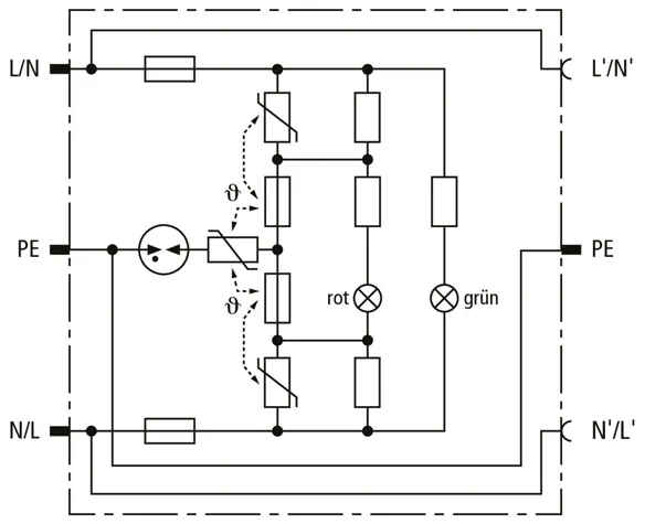 - Ochrona przepięciowa z układem kontrolnym i odłączającym