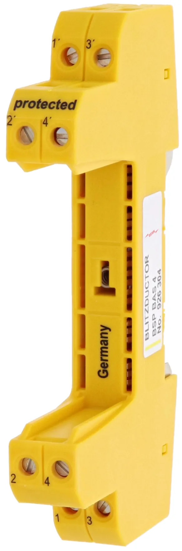 Podstawa BLITZDUCTOR SP to uniwersalny 4-biegunowy zacisk o kompaktowej budowie do montażu modułów ochronnych z rozłączeniem sygnału roboczego. Mechanizm zatrzaskowy podstawy zapewnia bezpieczne uziemienie modułu ochronnego poprzez szynę DIN (TH 35). Ponieważ żaden element obwodu ochronnego nie znajduje się w podstawie, dlatego kontrola okresowa jest ograniczona tylko do modułów ochronnych.
