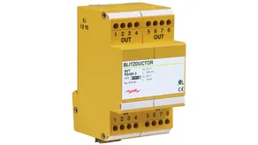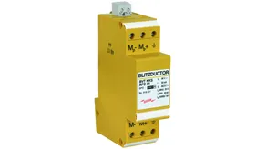 Skoordynowany energetycznie ogranicznik kombinowany do ochrony obwodu pomiarowego napięcia (kolor żółty). Wtykowy zestyk zdalnej sygnalizacji (zestyk rozwierny) do informowania o przeciążeniu (kontrola temperatury układu odprowadzania). Zalecany montaż w obudowie z blachy stalowej. Niskie udarowe napięcie przeskoku dzięki sterowaniu pojemnościowemu.