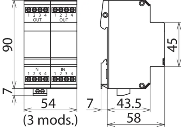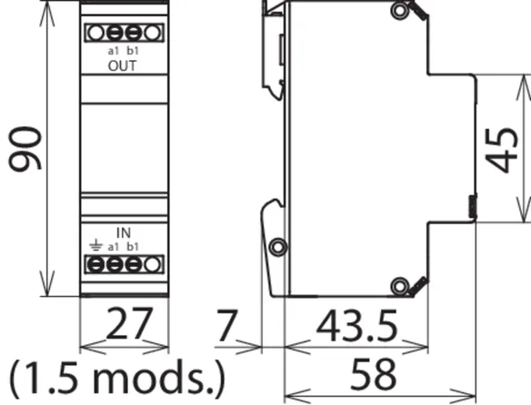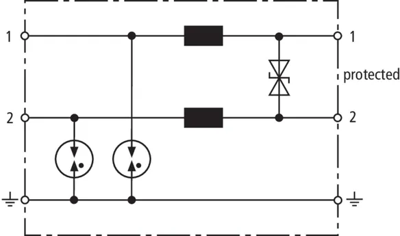 Skoordynowany energetycznie i wolny od prądów upływu ogranicznik przepięć do linii a/b, ISDN Uk0 oraz ADSL ze złączami RJ45 i dodatkowymi zaciskami śrubowymi. Układ pinów w gniazdach RJ45 jest kompatybilny z układem w gniazdach RJ11/12. Równoległe zaciski śrubowe są bardziej wytrzymałe niż gniazda RJ45 i zwiększają całkowity znamionowy prąd wyładowczy do 10 kA.