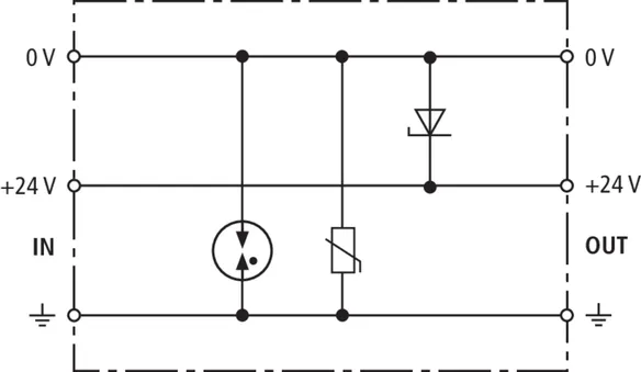 Ogranicznik przepięć z ulepszonym napięciowym poziomem ochrony do ochrony EMC komponentów elektronicznych o zasilaniu stałoprądowym. Idealnie nadaje się do sterowników PLC firmy Siemens. Ze względu na zastosowanie diody jednobiegunowej należy przestrzegać biegunowości napięcia roboczego.
