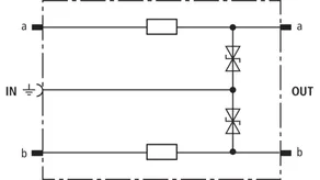 Wtyk ochronny dla 1 pary energetycznie skoordynowany z magazynkiem na ograniczniki DRL jako pierwszym stopniem ochrony urządzeń końcowych dla przesyłu o wysokiej częstotliwości np. G.703 lub ISDN U2 m , S2 m oraz S0. Montaż z EF 10 DRL. Zaleca się montaż tylko w połączeniu magazynkami na ograniczniki DRL.