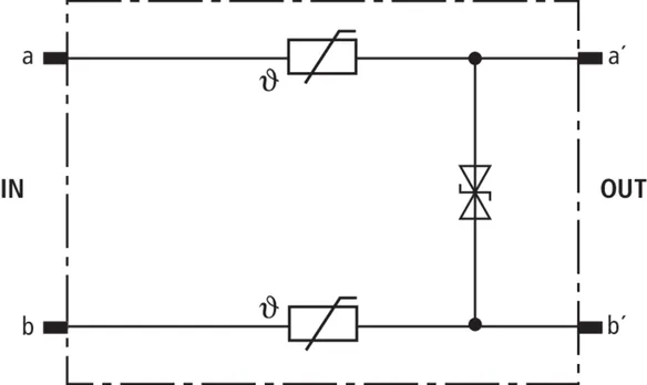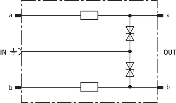 Wtyk ochronny dla 1 pary energetycznie skoordynowany z DRL 10 B jako pierwszym stopniem ochrony urządzeń końcowych z impendancjami odsprzęgającymi. Szczególnie odpowiedni do obwodów niesymetrycznych ze wspólnym potencjałem odniesienia. Uziemienie przez ramkę EF 10 DRL. Tylko do listew rozłącznych lub magazynków DRL.