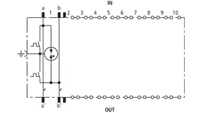 Wtyk ochronny dla 1 pary energetycznie skoordynowany z magazynkiem na ograniczniki DRL jako pierwszym stopniem ochrony urządzeń końcowych. Niski napięciowy poziom ochrony linia-linia i wbudowane zabezpieczenie nadprądowe do ADSL, ISDN Uk0 lub żył a/b. Montaż z EF 10 DRL. Zaleca się montaż tylko w połączeniu magazynkami na ograniczniki DRL.