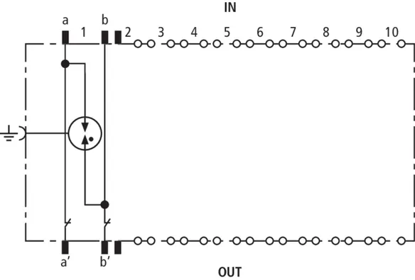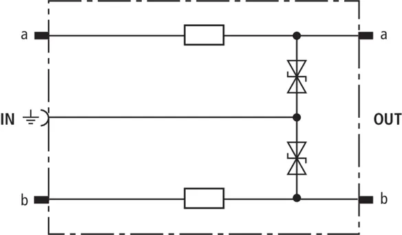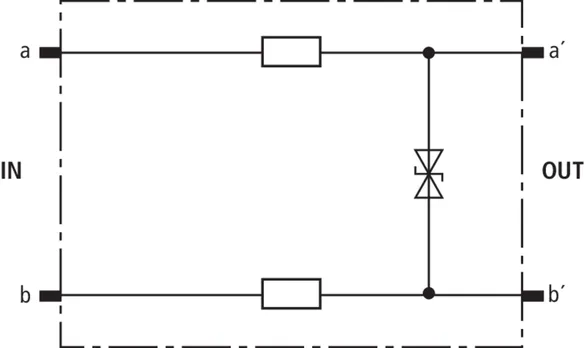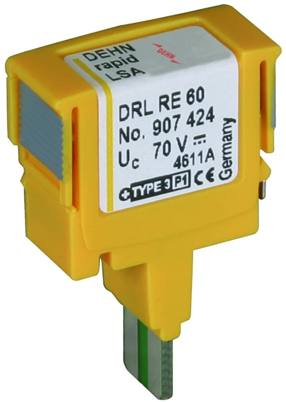 Wtyk ochronny dla 1 pary energetycznie skoordynowany z DRL 10 B jako pierwszym stopniem ochrony urządzeń końcowych z impendancjami odsprzęgającymi. Szczególnie odpowiedni do obwodów niesymetrycznych ze wspólnym potencjałem odniesienia. Uziemienie przez ramkę EF 10 DRL. Tylko do listew rozłącznych lub magazynków DRL.
