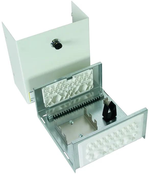 - Wstępnie zmontowana obudowa systemowa do komponentów okablowania i elementów ochronnych