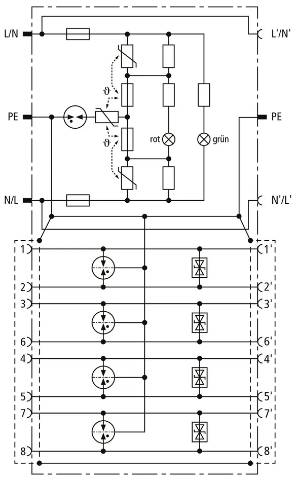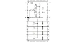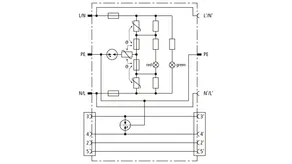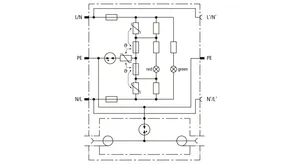 Kombinowany adapter z ochroną przepięciową do stosowania po stronie zasilania i wejścia danych w celu ochrony komponentów sieci LAN. Obwód ochronny dla wszystkich par żył dla przypisania pinów Ethernet.