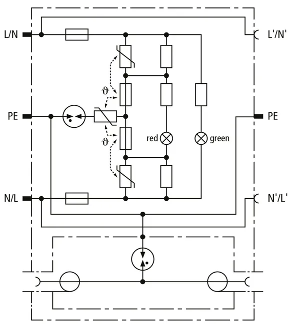 | Całkowity prąd wyładowczy (8/20 µs) [L+N-PE] (Itotal ) | 5 kA |
