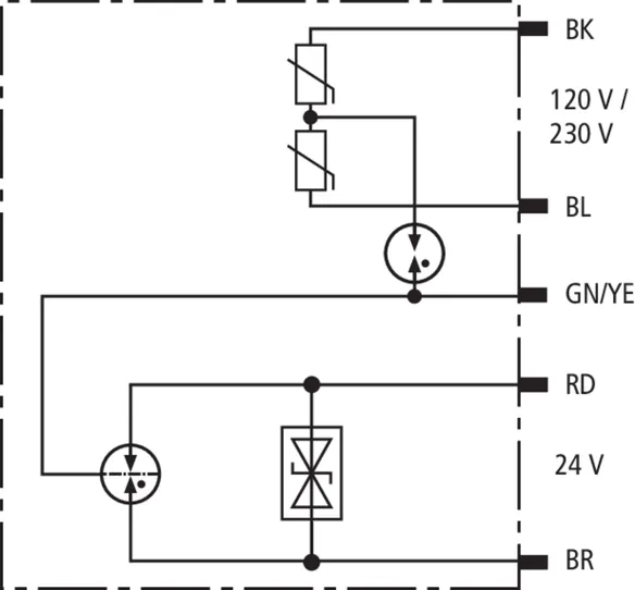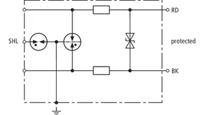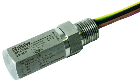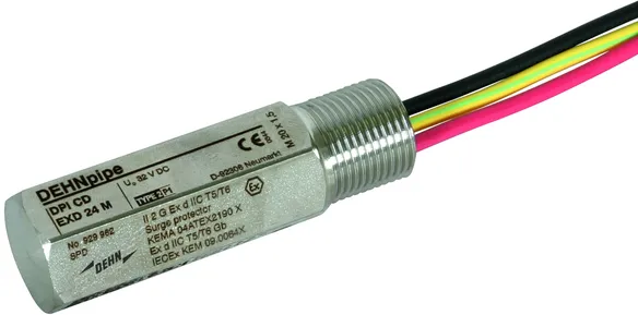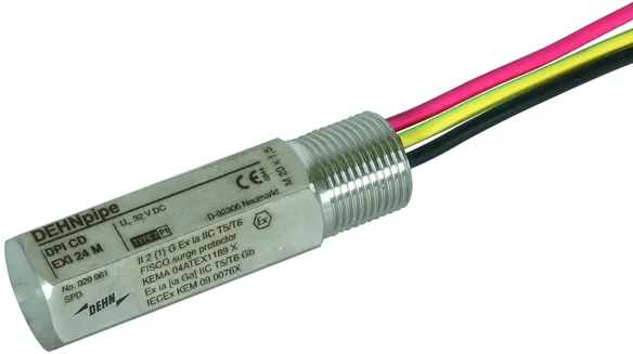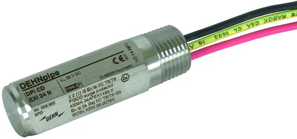 Ogranicznik przepięć z obwodem ochronnym o niskiej pojemności w hermetycznej obudowie ciśnieniowej do stosowania w strefach zagrożonych wybuchem w celu ochrony obwodów pomiarowych i systemów magistralnych. Wytrzymałość izolacji > 500 V linia-ziemia. Certyfikat zgodności z normami CSA i USA Hazloc.
