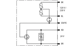 Ogranicznik przepięć w kombinowanej konstrukcji dla strony energii i danych. Hermetyczna obudowa ciśnieniowa do użytku w strefach zagrożonych wybuchem 1 i 2, do ochrony zasilania sieciowego 120/230 V i interfejsu danych 24 V urządzeń polowych.