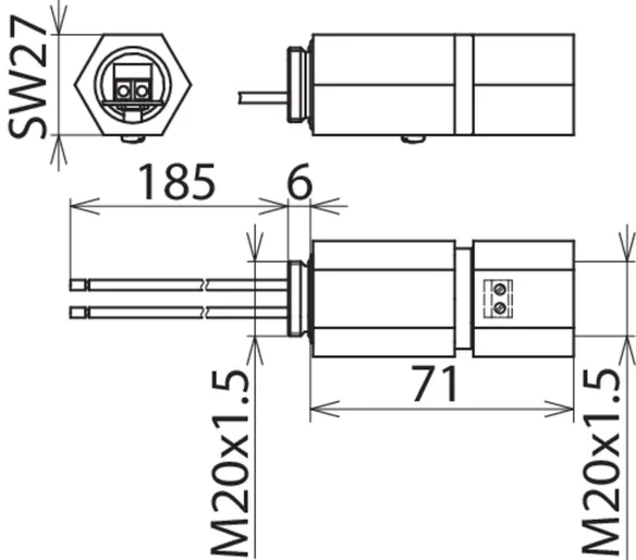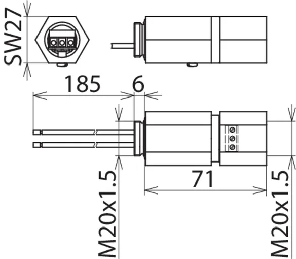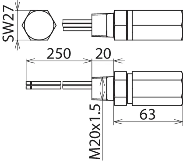 | Montaż (wejście / wyjście) | gwint wewnętrzny M20 x 1,5 / gwint zewnętrzny M20 x 1,5 |