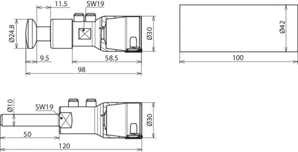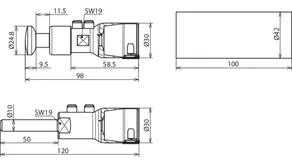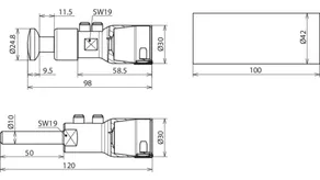 | Przyłączenie | Sworzeń Ø10 mm, dł. 50 mm |