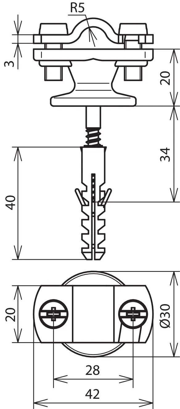 | Kołek z tworzywa sztucznego | Ø8 x 40 mm |