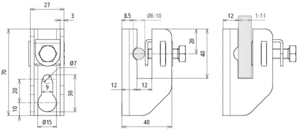 | Mocowanie | Ø15 / 9 x 20 mm |