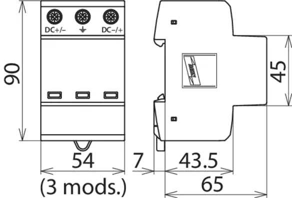 | Znamionowy prąd wyładowczy (8/20 µs) [(DC+/DC-) --> PE] (In ) | 12,5 kA |