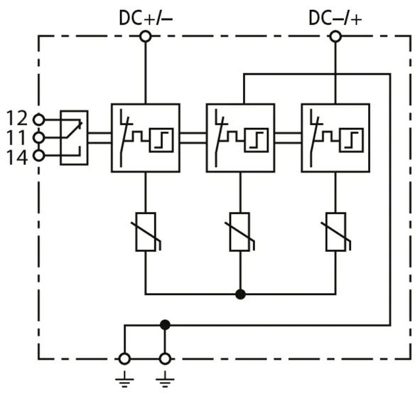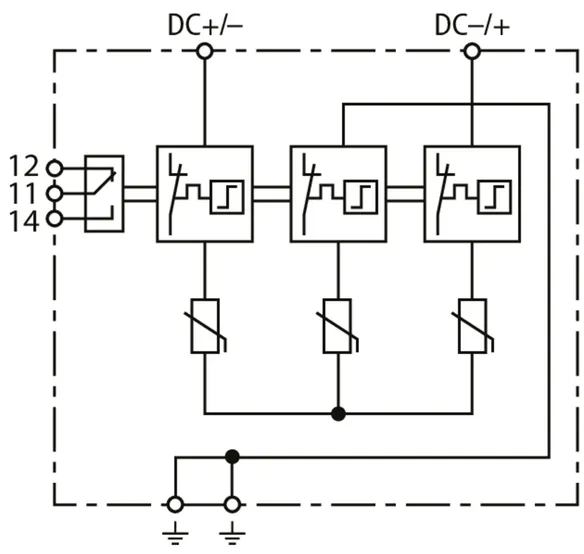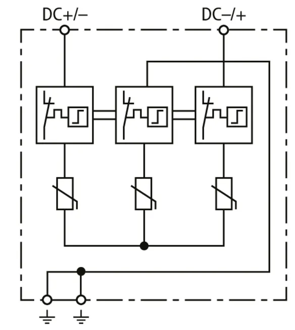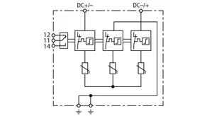 | Całkowity prąd udarowy (10/350 µs) [DC+/DC- -> PE] (Itotal ) | 12,5 kA |