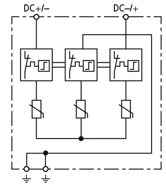 | Prąd udarowy (10/350 µs) [DC+ -> PE/DC- -> PE] (Iimp ) | 6,25 kA |