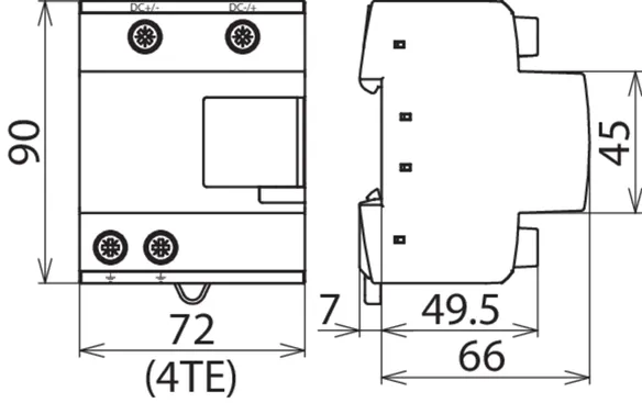 | Napięciowy poziom ochrony [(DC+/DC-) -> PE] (UP ) | < 4,5 kV |